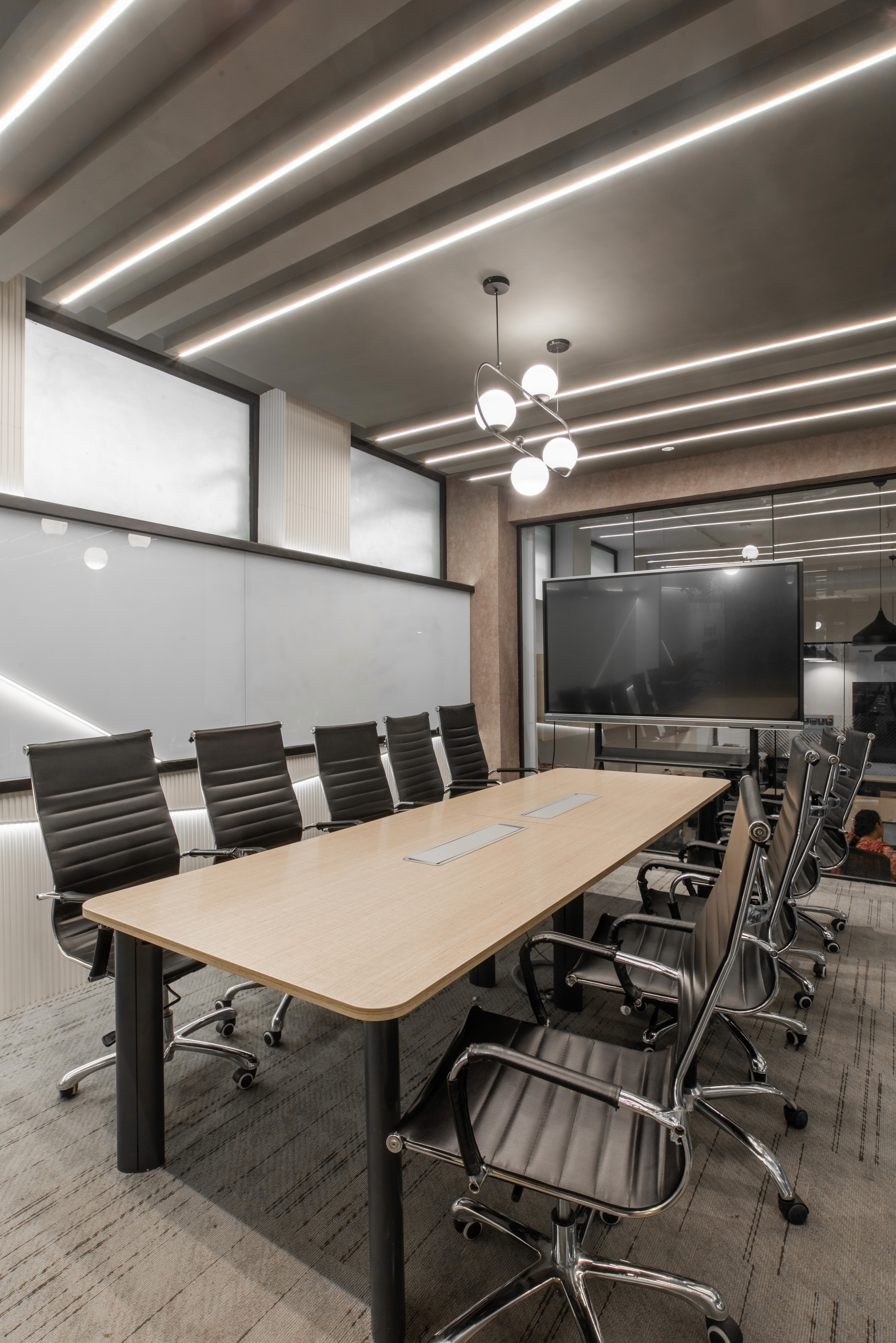 This project, designed in with Aloka Design Studio, focused on extending an existing, fully operational co-working space without disrupting day-to-day activity. The brief was to add workstations and amenities while making the new area feel seamless with the original, rather than like a visible extension.