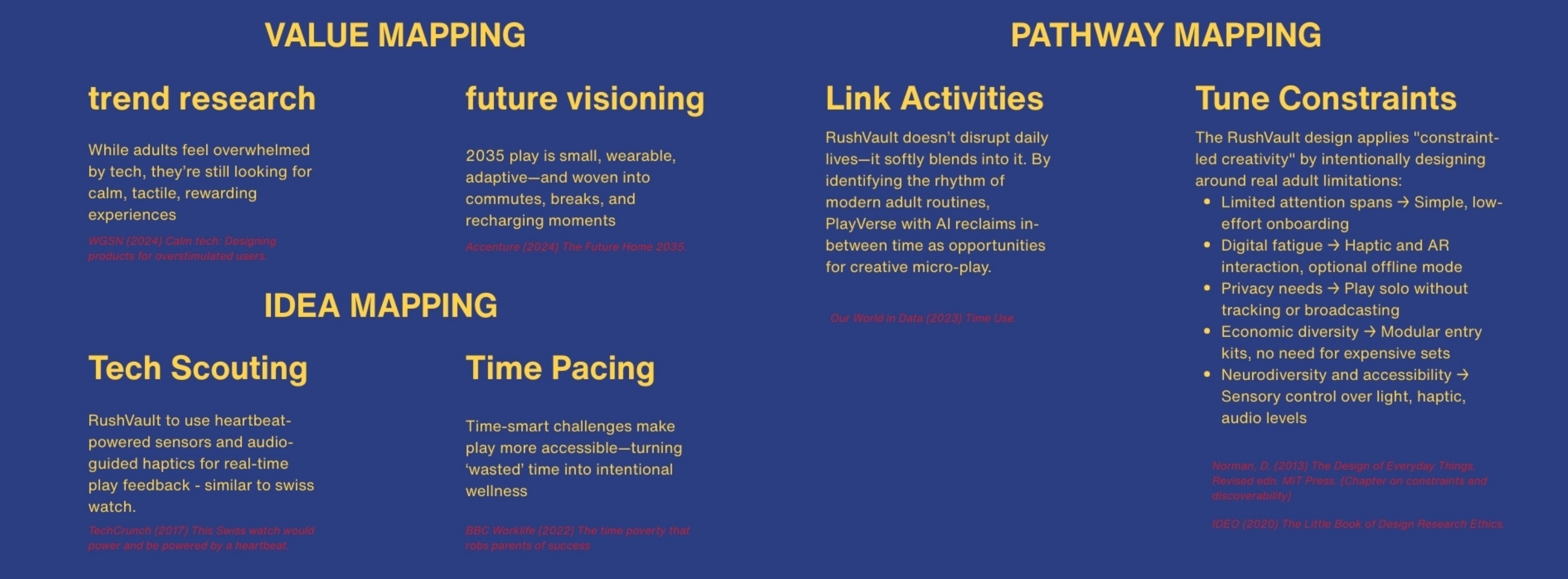 This project reframed my view of interaction design. Play, I learned, is not a stage of life but a state of mind. Designing RushVault taught me to translate emotion into system logic by crafting experiences that are mindful, not mindless.