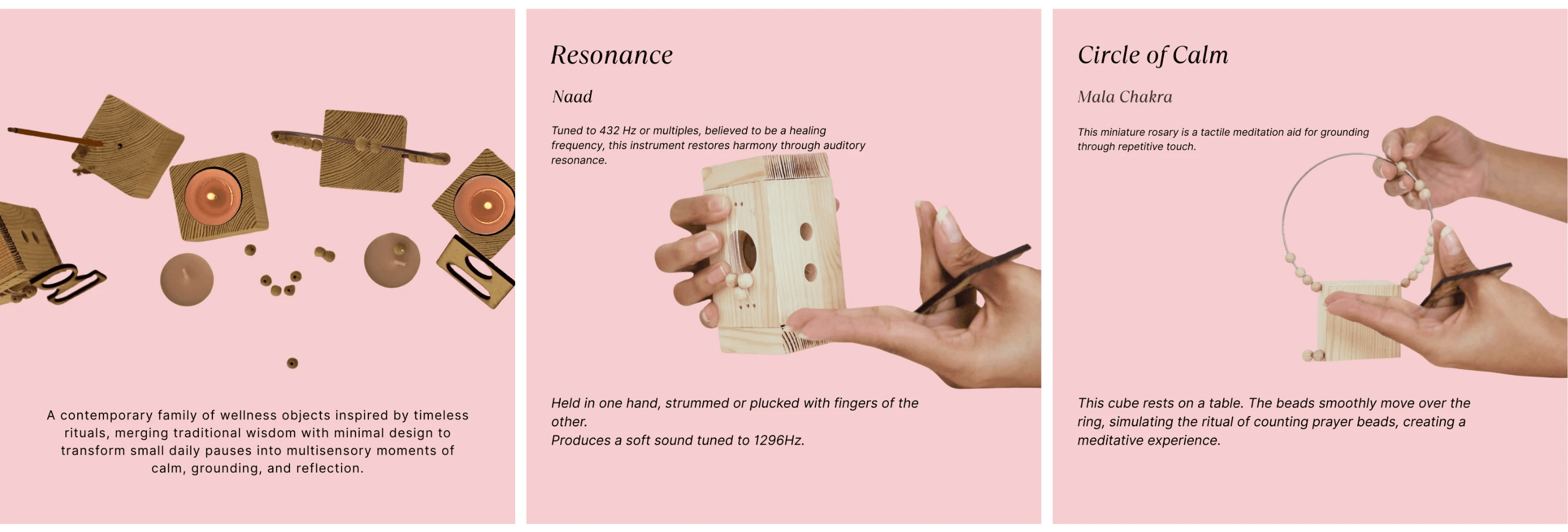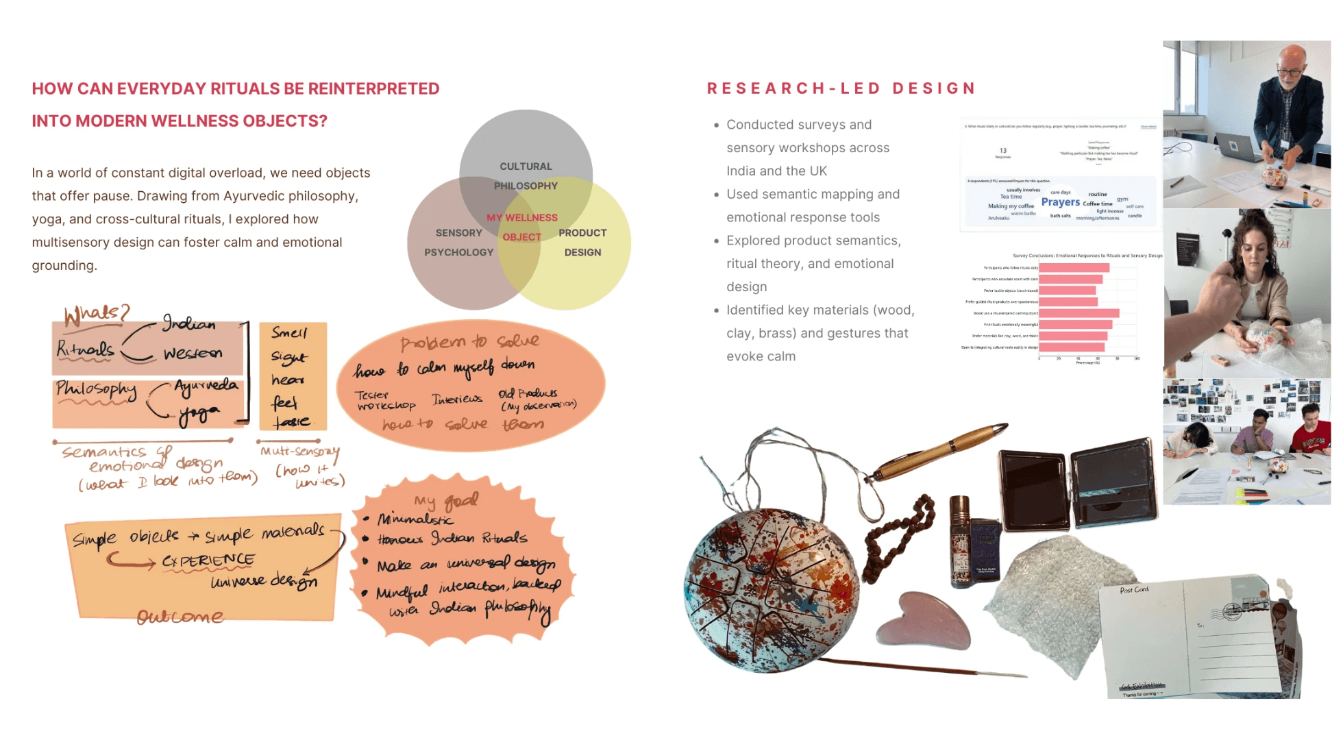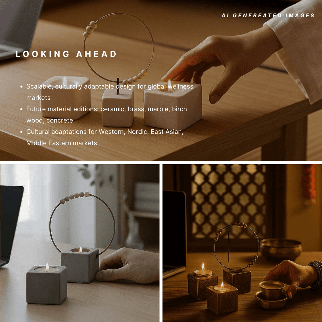 The result was a quiet tool for contemporary mindfulness. With the help of AI , I explored how the same form can be replicated in different materials across the world to suit the visual language from the data collected from their rituals