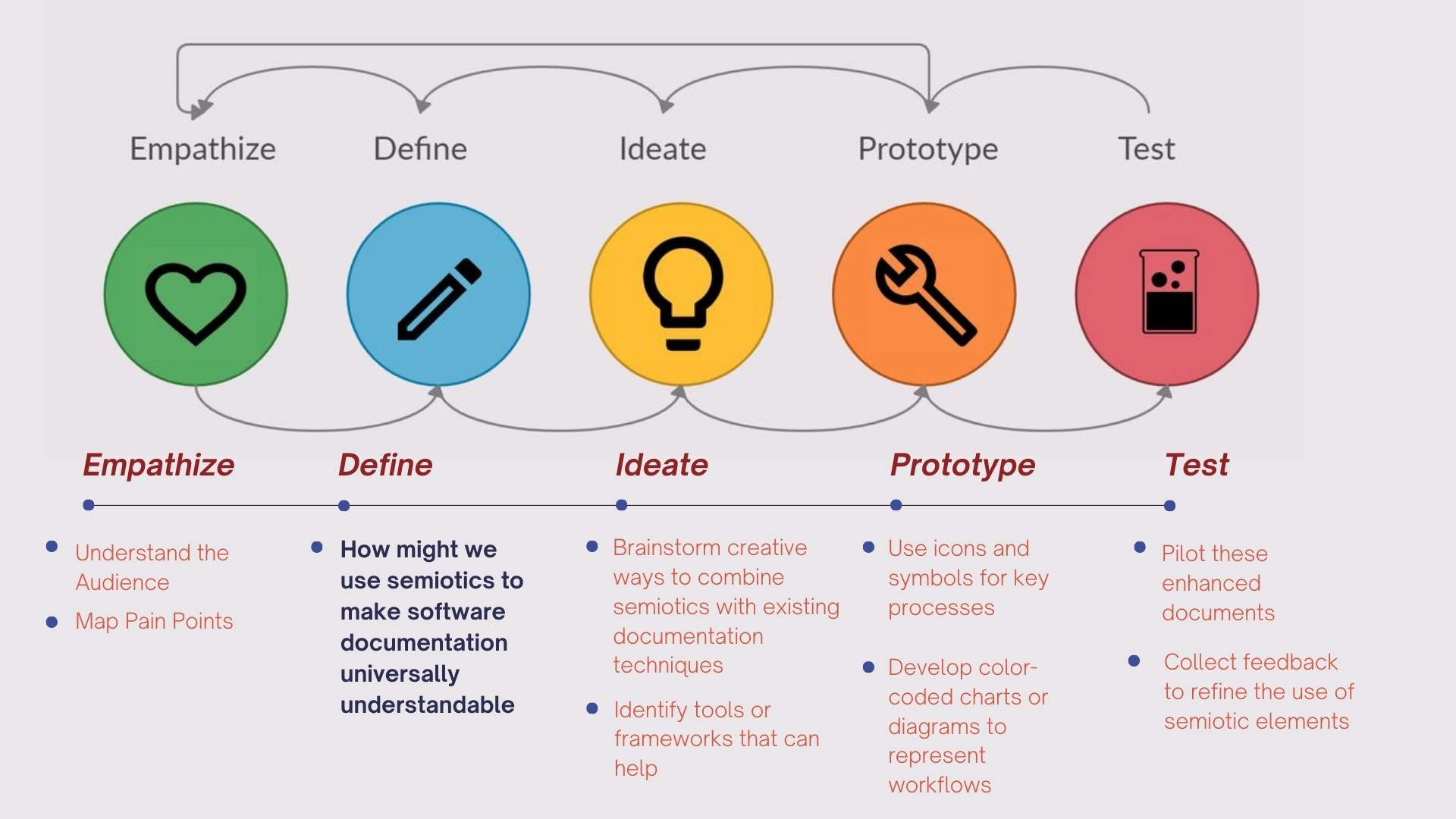 After discussing with the manager, I was encouraged to draw upon my artistic background to help the team think more visually. Building on my first-semester Design Thinking learnings, I collaborated with the team to identify key challenges and developed a plan to conduct a Visual Thinking Workshop aimed at enhancing creative problem-solving across the group. The workshop was structured to shift participants from analytical to intuitive thinking, helping them translate abstract concepts into simple, shareable visuals.